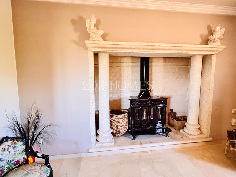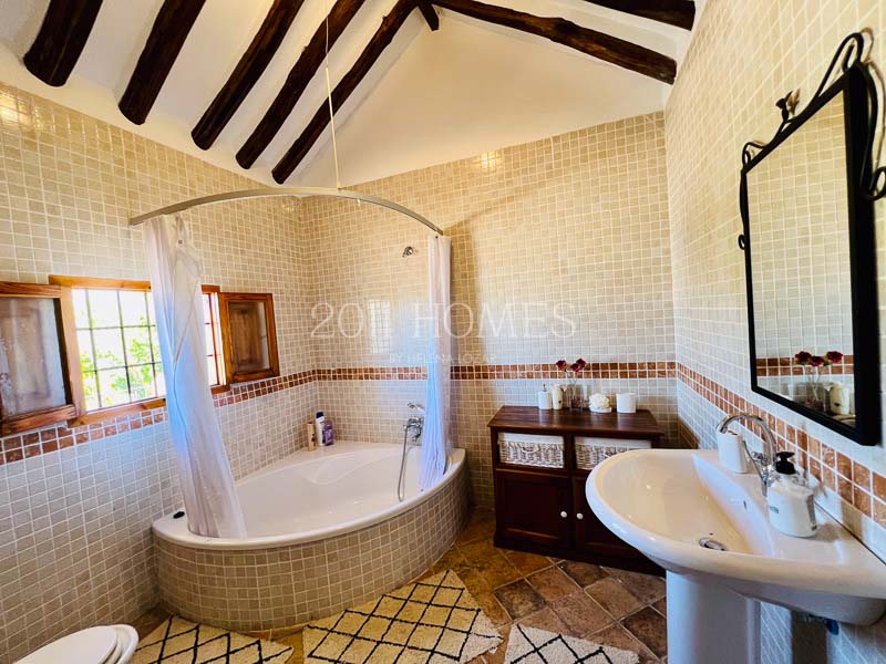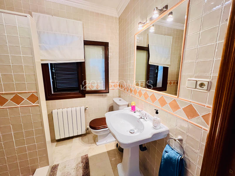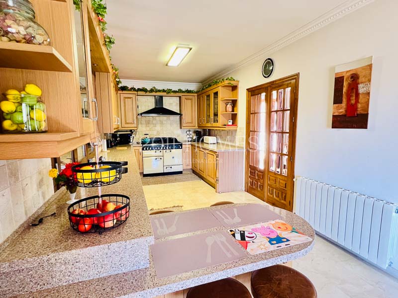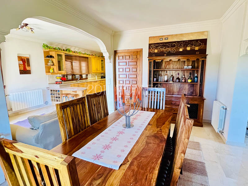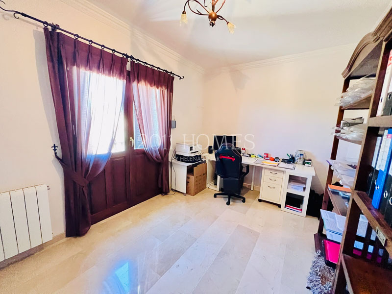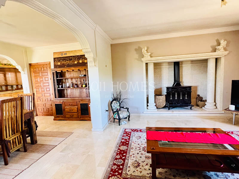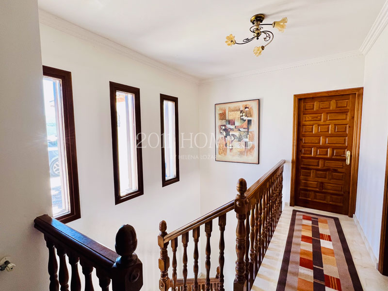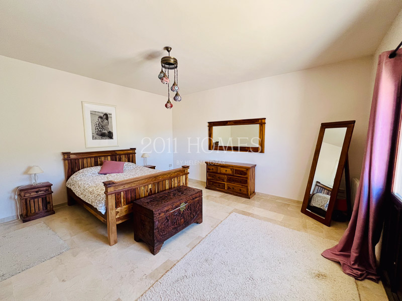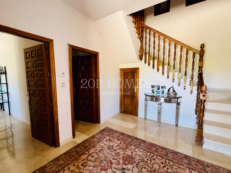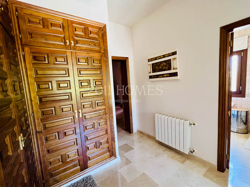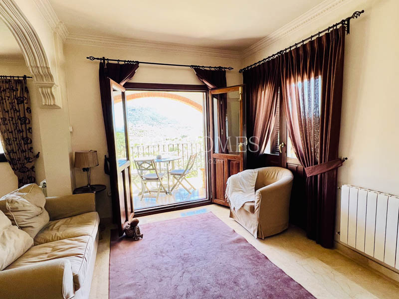 La casa principal es una espaciosa residencia familiar distribuida en dos niveles. El nivel inferior cuenta con dos dormitorios con baño, asà como una lujosa suite parental que comprende un vestidor, un estudio independiente actualmente habilitado como cuarto del niño, un baño, un dormitorio principal con acceso a la terraza y la extensión exterior de la propiedad. Una gran escalera de mÔrmol lleva al luminoso piso superior, accesible también desde la zona del camino de entrada. Aquà encontrarÔ un baño y un lavadero a un lado, un dormitorio convertido en espacio de oficina y las habitaciones de la vivienda al otro lado. Los espacios habitables incluyen una cocina bellamente decorada que desemboca en una acogedora zona de descanso con un balcón que ofrece impresionantes vistas. Esto se abre a un Ôrea de comedor que conduce a un salón con una llamativa chimenea, creando un flujo armonioso en toda la casa.