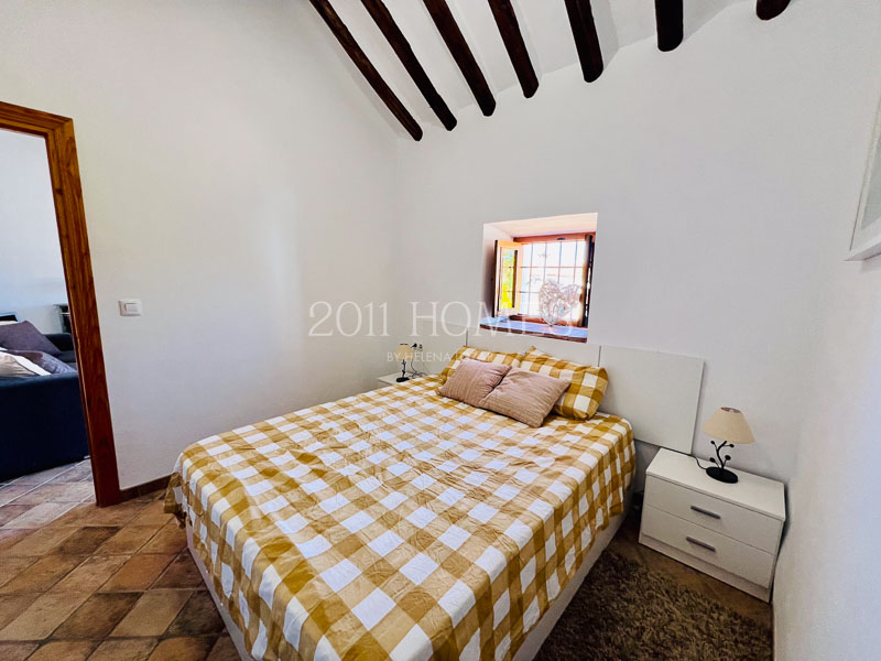 MÔs adelante en el camino, le espera una encantadora casa independiente de un dormitorio, que cuenta con una hermosa terraza y techos de doble altura con vigas de madera a la vista. Entramo al salón-cocina, para seguir a un pequeño dormitorio doble a la izquierda y un amplio baño con bañera esquinera.